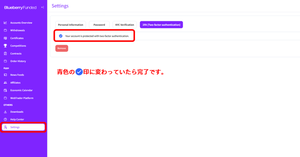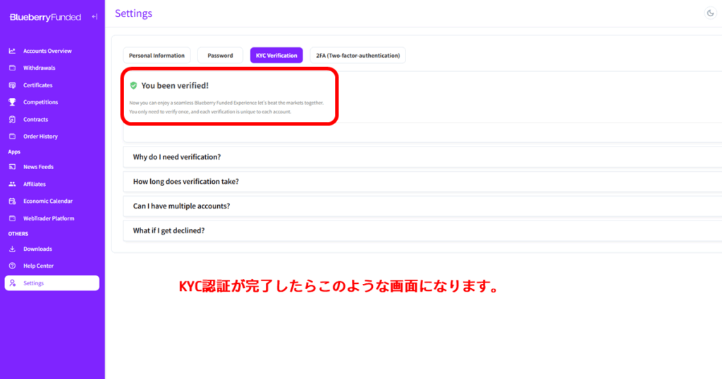以上で、Blueberry Fundedの認証手続きは完了です!